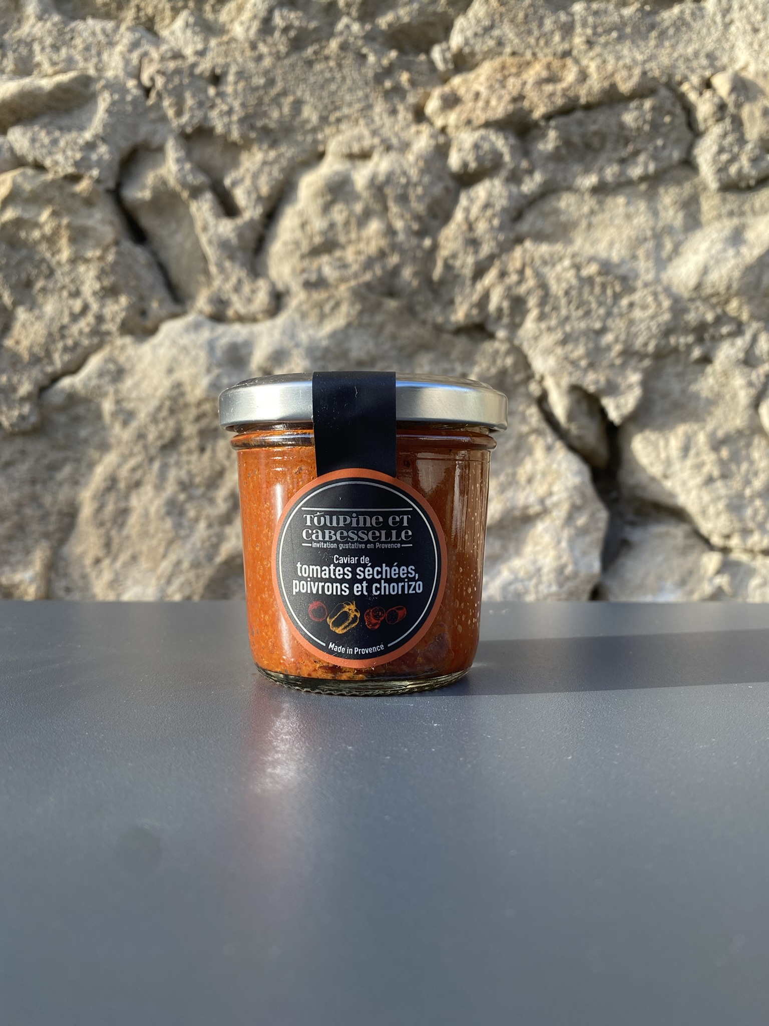 Pour un apéritif ensoleillé, faites vous plaisir avec ce caviar de tomates séchées, poivrons et chorizo.