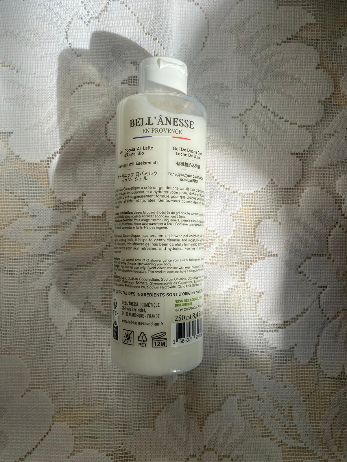 Ce gel douche au lait d’ânesse bio offrira à votre peau un vrai moment de bien-être avec sa texture onctueuse et son parfum délicat. Sa mousse fine et soyeuse nettoie en douceur tout en laissant un voile délicatement parfumé. Pour une peau douce et confortable après chaque utilisation.