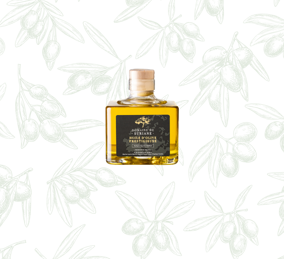 Plus qu’une huile d’olive, notre huile prestigieuse est un véritable nectar. Tout commence avec une sélection rigoureuse des arbres choisis peu chargés pour favoriser la concentration aromatique des fruits. Les olives ainsi choisies sont cueillies bien vertes et sont ensuite maturées quelques jours à l’abri de l’air.